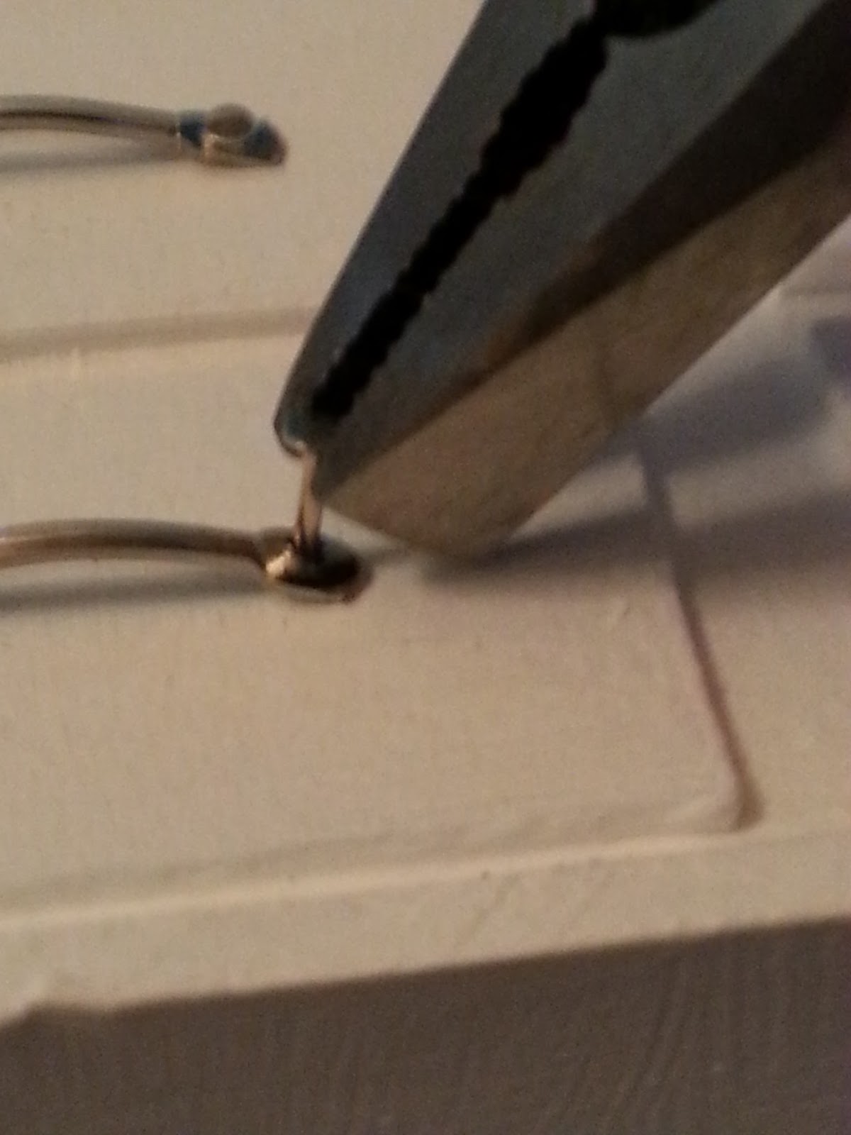 I found these incredible little jewelry findings that looked exactly like drawer pulls to me. So with those, and some head pins (cut short), I made some pulls for the drawers.